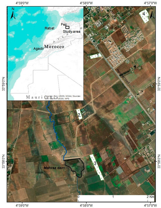 The plain of Saiss is located between 390 and 700 m altitude and is characterized by a continental climate with extreme differences between seasons [51]. The annual average temperature and precipitations are around 7.8 °C and 549 mm, respectively [52]. The extreme temperatures of the summer can exceed 40 °C between July and August, while the minimum temperatures of the winter can reach 3 °C in January.