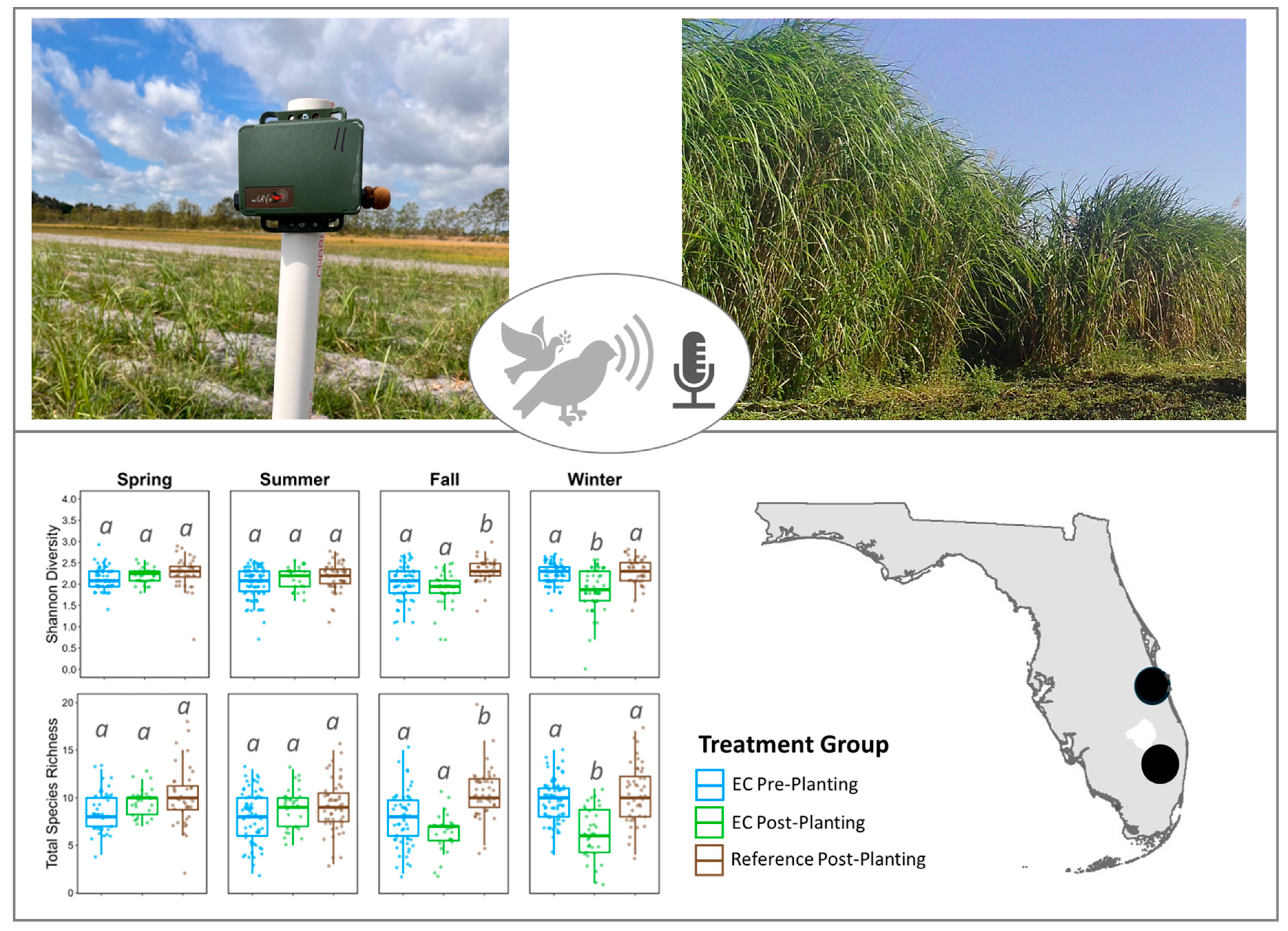 Chicago/Turabian StyleWalston, Leroy J., Jules F. Cacho, Ricardo A. Lesmes-Vesga, Hardev Sandhu, Colleen R. Zumpf, Bradford Kasberg, Jeremy Feinstein, and Maria Cristina Negri. 2025. "Passive Acoustic Monitoring Provides Insights into Avian Use of Energycane Cropping Systems in Southern Florida" Birds 6, no. 4: 60. https://doi.org/10.3390/birds6040060