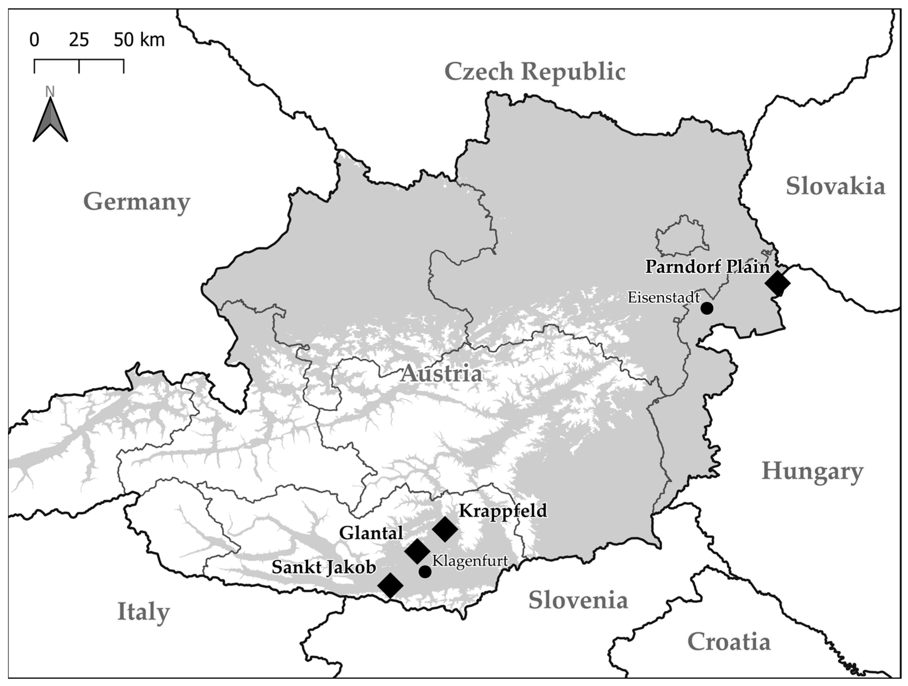 - Teufelbauer, N.; Seaman, B.; Hohenegger, J.A.; Nemeth, E.; Karner-Ranner, E.; Probst, R.; Berger, A.; Lugerbauer, L.; Berg, H.-M.; Laßnig-Wlad, C. (Eds.) Österreichischer Brutvogelatlas 2013–2028; Verlag des Naturhistorischen Museums Wien: Vienna, Austria, 2023. [Google Scholar]