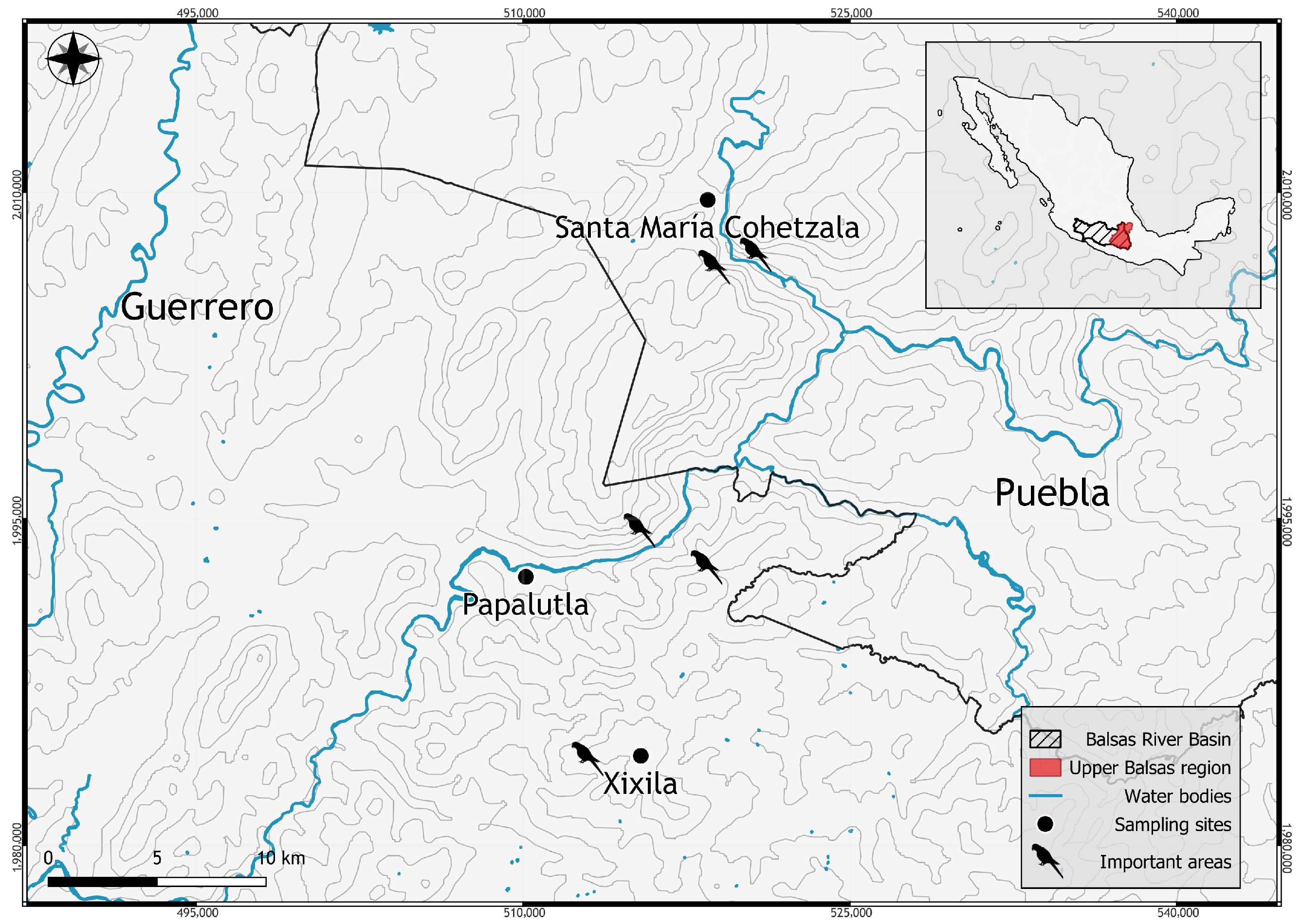- Vázquez-Reyes, L.D.; Jiménez-Arcos, V.H.; SantaCruz-Padilla, S.A.; García-Aguilera, R.; Aguirre-Romero, A.; Arizmendi, M.D.C.; Navarro-Sigüenza, A.G. Aves del Alto Balsas de Guerrero: Diversidad e identidad ecológica de una región prioritaria para la conservación. Rev. Mex. Biodivers. 2018, 89, 873–897. [Google Scholar] [CrossRef]