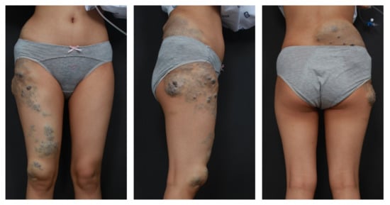 - Redondo, P.; Aguado, L.; Martínez-Cuesta, A. Diagnosis and management of extensive vascular malformations of the lower limb: Part I. Clinical diagnosis. J. Am. Acad. Dermatol. 2011, 65, 893–908. [Google Scholar] [CrossRef] [PubMed]