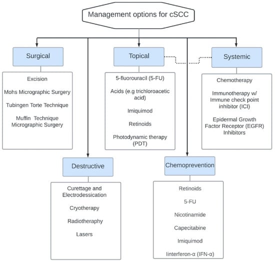 Management options for cutaneous squamous cell carcinoma (cSCC).