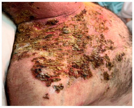 Pemphigus vegetans represents the rarest clinical subtype of the various forms of pemphigus. It is different from pemphigus vulgaris as patients develop vegetative lesions occurring most frequently in intertriginous spaces [9]. The data in the literature describe two subtypes: the Hallopeau type, a milder variant that usually presents with initial pustules that transform into vegetative, pain-inducing lesions, and the Neumann subtype, a more aggressive presentation characterized by vesicles, bullae, and ulcerative lesions which in time become verrucous [10,11]. The case that we have presented correlates with the Neumann subtype, due to its clinical progress from large erosions to severe vegetating plaques composed of granulation tissue and crusts that covered the entire upper part of the trunk and the neck area. The first-line treatment of the majority of patients with pemphigus consists of a combination of corticosteroids and immunosuppressant medications. The lack of response to the first-line treatment was an indicator that we were dealing with a more severe category of disease requiring a different therapeutic approach [9,12,13].