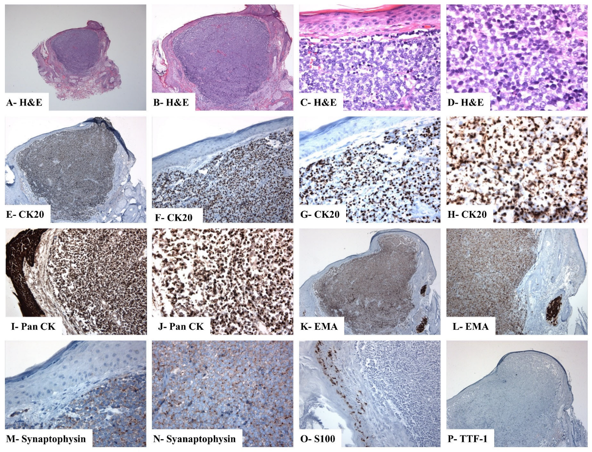 - Richardson, W.M.; Hohmann, A.; Usmani, H.; Lozeau, D.; Huston, T.L. CK20/CK7 double-negative Merkel cell carcinoma in situ: A case report. J. Cutan. Pathol. 2022, 49, 947–956. [Google Scholar] [CrossRef]