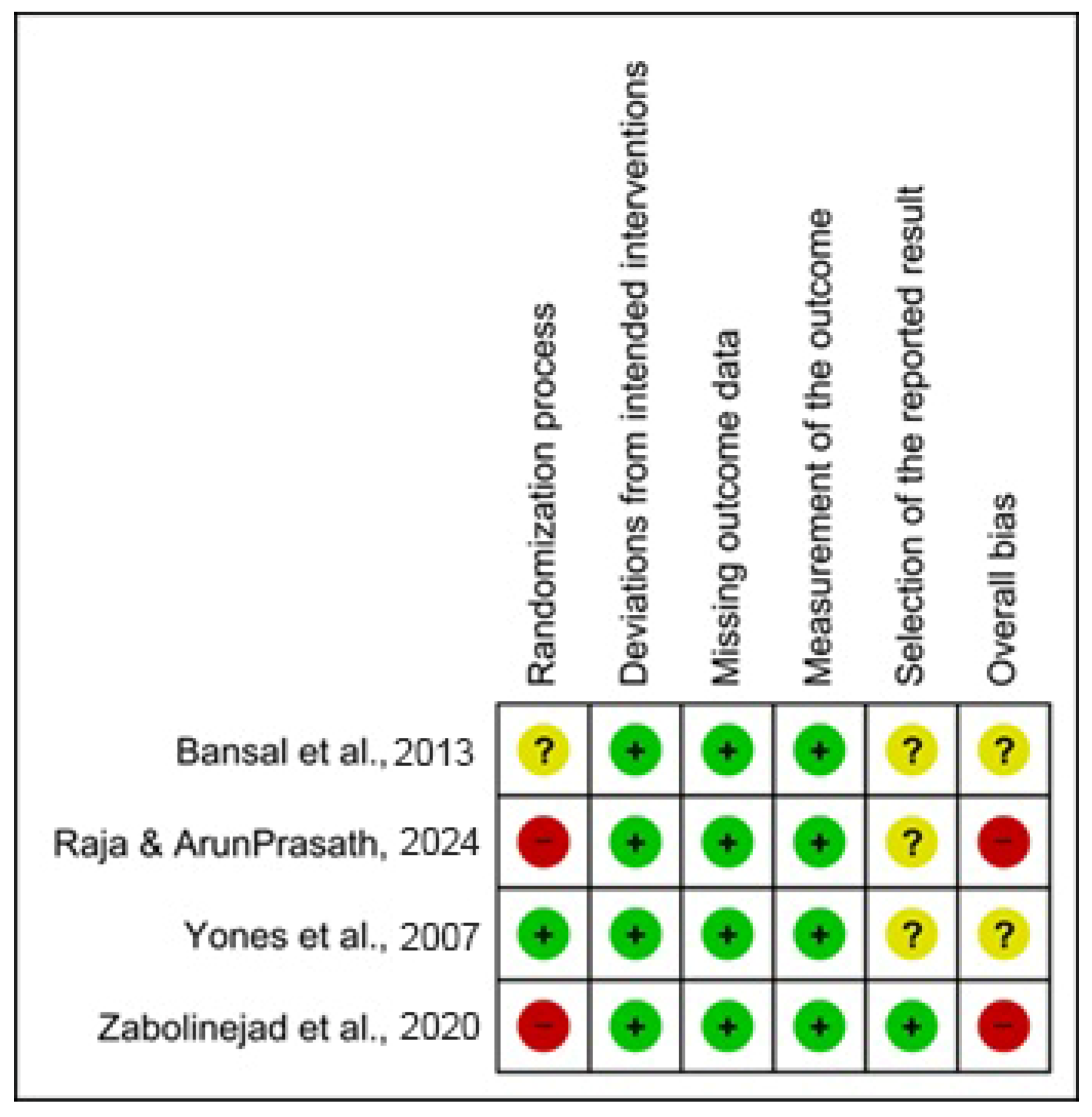 | Zabolinejad et al. [11] Iran | N: 40 EG: (n = 20) CG: (n = 20) Sex: EG: (10) 50% (M) (10) 50% (F) CG: (10) 50% (M) (10) 50% (F) Age: EG: 36 ± 11.7 CG: 31.8 ± 10.8 | EG: nb-UVB CG: P + nbUVB | EG: Whole body CG: Whole body | T0: Baseline T1: After 20 sessions T2: After 40 sessions T3: After 60 sessions | - Affected area and degree of depigmentation: (VASI) | Combining psoralen with nb-UVB (P-nbUVB) yields better clinical outcomes for vitiligo than nb-UVB alone, while remaining well-tolerated |