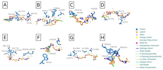 - Salentin, S.; Schreiber, S.; Haupt, V.J.; Adasme, M.F.; Schroeder, M. PLIP: Fully automated protein–ligand interaction profiler. Nucleic Acids Res. 2015, 43, W443–W447. [Google Scholar] [CrossRef]