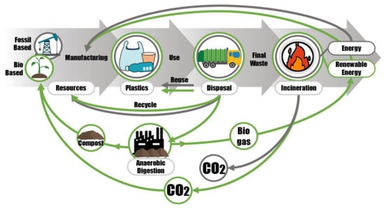 An infographic representation of the linear and circular economy of bioplastics. Reproduced from ref [22].