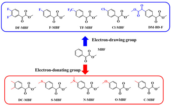 UV-visible absorption spectra of different benzoylformic acids in acetonitrile. Reproduced with permission of Ref. [240]. Copyright 2022. Elsevier.