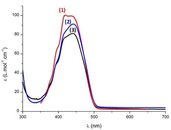 UV-visible absorption spectra of (1) DKSi, (2) Bn-DKSi, and (3) Et-DKSi in acetonitrile. Reproduced with permission of Ref. [232]. Copyright 2017. The American Chemical Society.