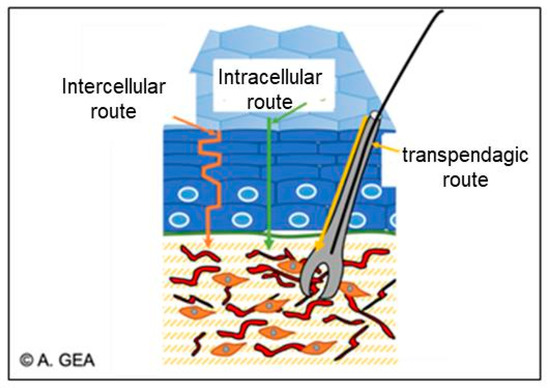 - Ng, K.W.; Lau, W.M. Skin Deep: The Basics of Human Skin Structure and Drug Penetration. In Percutaneous Penetration Enhancers Chemical Methods in Penetration Enhancement: Drug Manipulation Strategies and Vehicle Effects; Springer: Berlin/Heidelberg, Germany, 2015; pp. 3–11. ISBN 9783662450130. [Google Scholar]