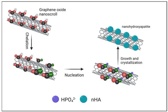 - Li, D.; Chen, M.; Guo, W.; Li, P.; Wang, H.; Ding, W.; Li, M.; Xu, Y. In Situ Grown Nanohydroxyapatite Hybridized Graphene Oxide: Enhancing the Strength and Bioactivity of Polymer Scaffolds. ACS Omega 2022, 7, 12242–12254. [Google Scholar] [CrossRef] [PubMed]