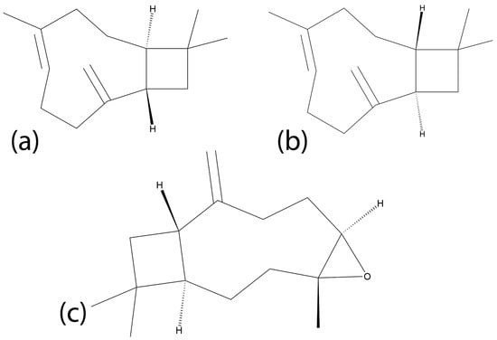 - Dahham, S.S.; Tabana, Y.M.; Iqbal, M.A.; Ahamed, M.B.K.; Ezzat, M.O.; Majid, A.S.A.; Majid, A.M.S.A. The Anticancer, Antioxidant and Antimicrobial Properties of the Sesquiterpene β-Caryophyllene from the Essential Oil of Aquilaria Crassna. Molecules 2015, 20, 11808–11829. [Google Scholar] [CrossRef]