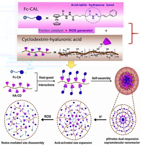 - Xu, X.; Zeng, Z.; Chen, J.; Huang, B.; Guan, Z.; Huang, Y.; Huang, Z.; Zhao, C. Tumor-targeted supramolecular catalytic nanoreactor for synergistic chemo/chemodynamic therapy via oxidative stress amplification and cascaded Fenton Reaction. Chem. Eng. J. 2020, 390, 124628. [Google Scholar] [CrossRef]