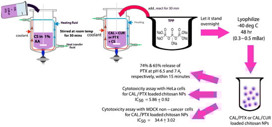 - Barrera-Martinez, C.; Melendez-Ortiz, H.; Padilla-Vaca, F.; Atanase, L.; Peralta-Rodriguez, R.; Liakos, I. Dual loading of trans-cinnamaldehyde and either paclitaxel or curcumin in chitosan nanoparticles: Physicochemical characterization and biological evaluation against MDCK and HeLa cells. Polymers 2024, 16, 3087. [Google Scholar] [CrossRef] [PubMed]