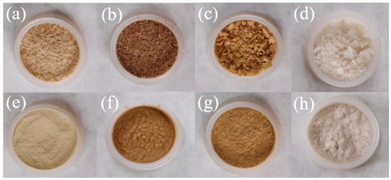 - Niu, L.; Guo, Q.; Xiao, J.; Li, Y.; Deng, X.; Sun, T.; Liu, X.; Xiao, C. The effect of ball milling on the structure, physicochemical and functional properties of insoluble dietary fiber from three grain bran. Food Res. Int. 2023, 163, 112263. [Google Scholar] [CrossRef]
