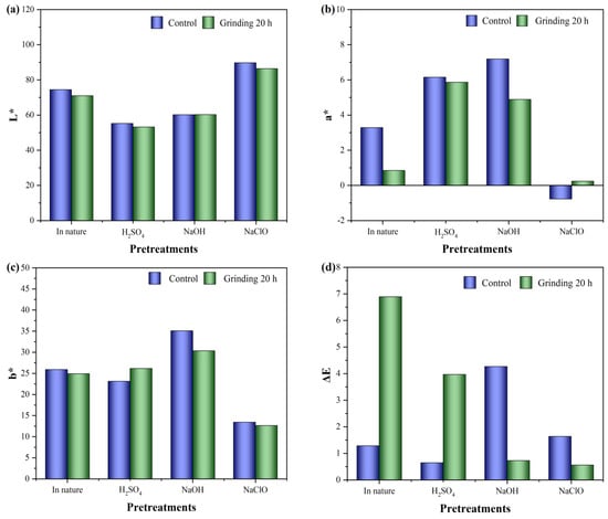 | Pretreatments | Grinding Time (h) | Particle Diameter (µm) | |||