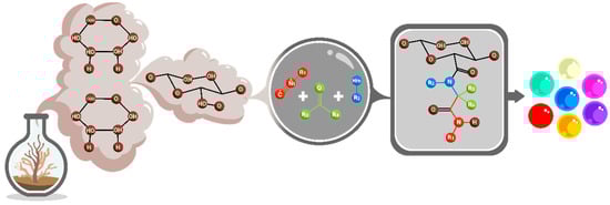 In chemical modification, various functional groups are added to alginate to improve its solubility, biodegradability, and biocompatibility. This includes the synthesis of sodium alginate grafted with polyacrylamide using microwave irradiation, which resulted in a higher degree of substitution and reproducibility. Generally, the two secondary hydroxyl groups (at C-2 and C-3) or the carboxyl group (at C-6) of the alginate structure can be chemically modified. Hydroxyl group modification is mainly carried out through oxidation, reductive amination, and copolymerization reactions (Figure 2). Chemical modification of the carboxyl group comprises esterification, Ugi, and amide reactions [].
