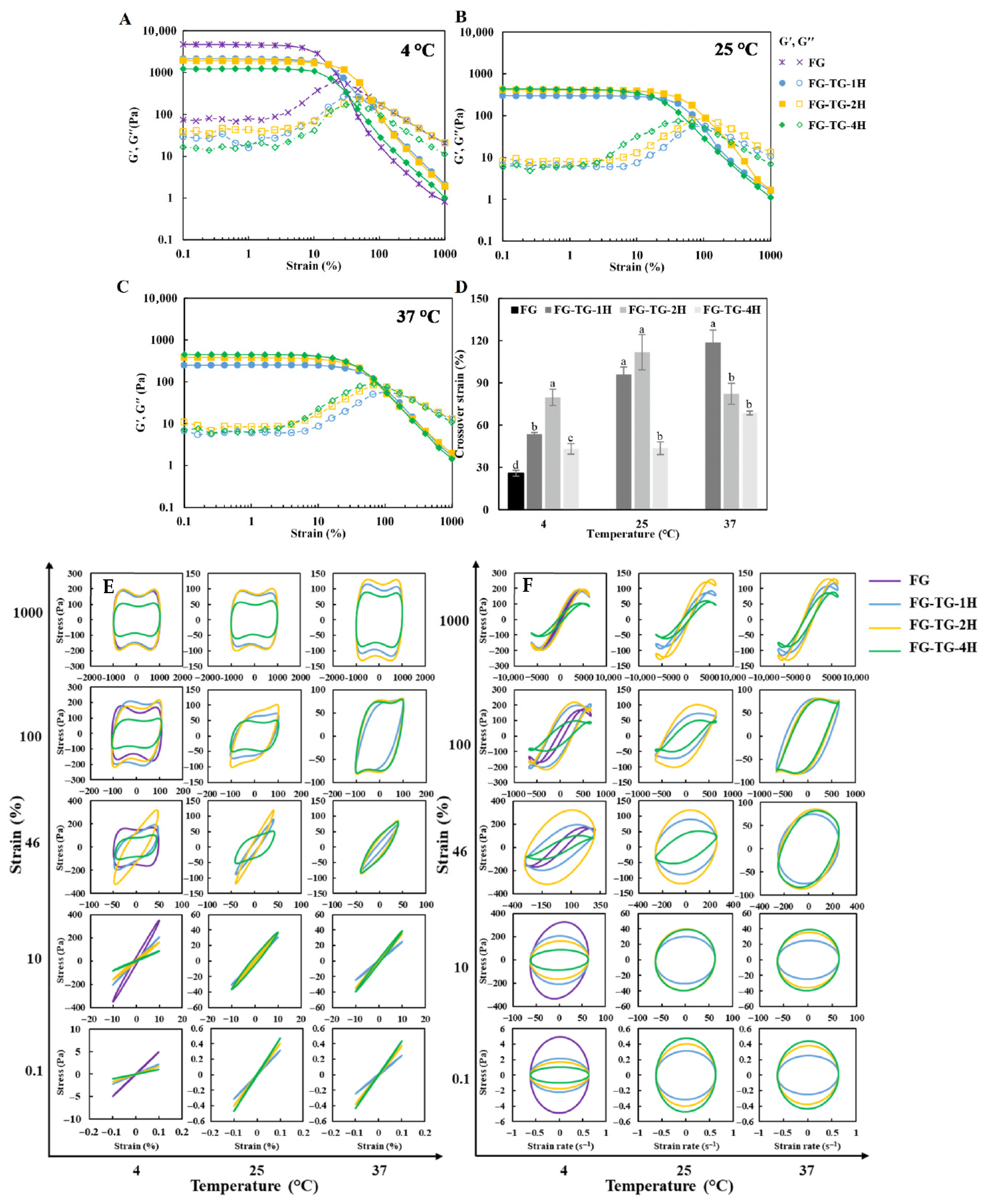 - Lin, Y.; Roos, Y.H.; Miao, S. Transglutaminase crosslinked fish gelatin emulsion gels: Structure, rheology behaviors, and delivery functionality. Food Hydrocoll. 2025, 162, 111001. [Google Scholar] [CrossRef]