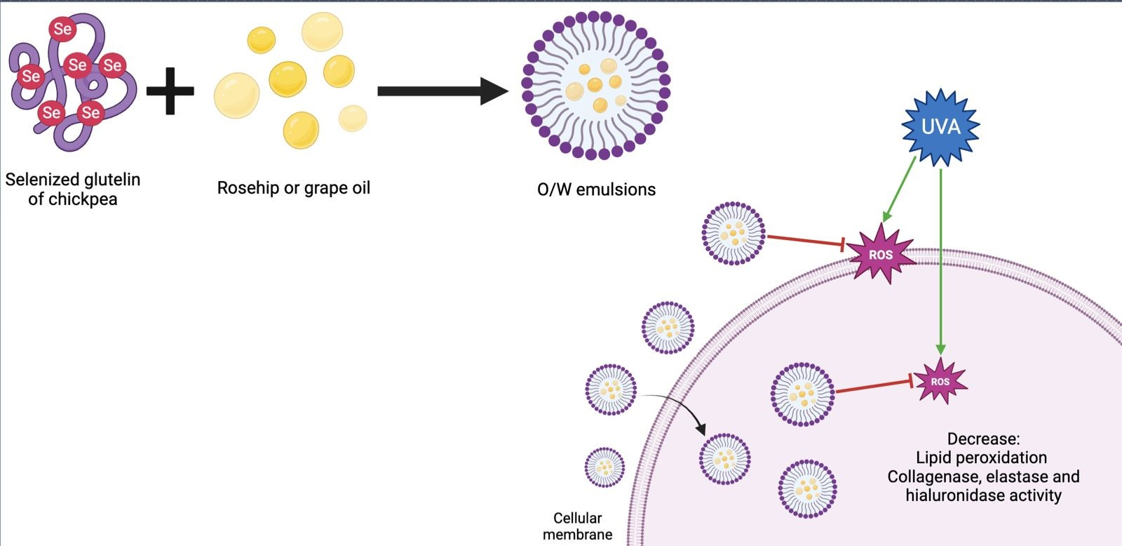 Antioxidant, Photoprotective, and In Vitro Antiaging Assessment of Optimized Water/Oil Emulsions of Selenized Chickpea Glutelin with Rosehip Oil or Grapeseed Oil