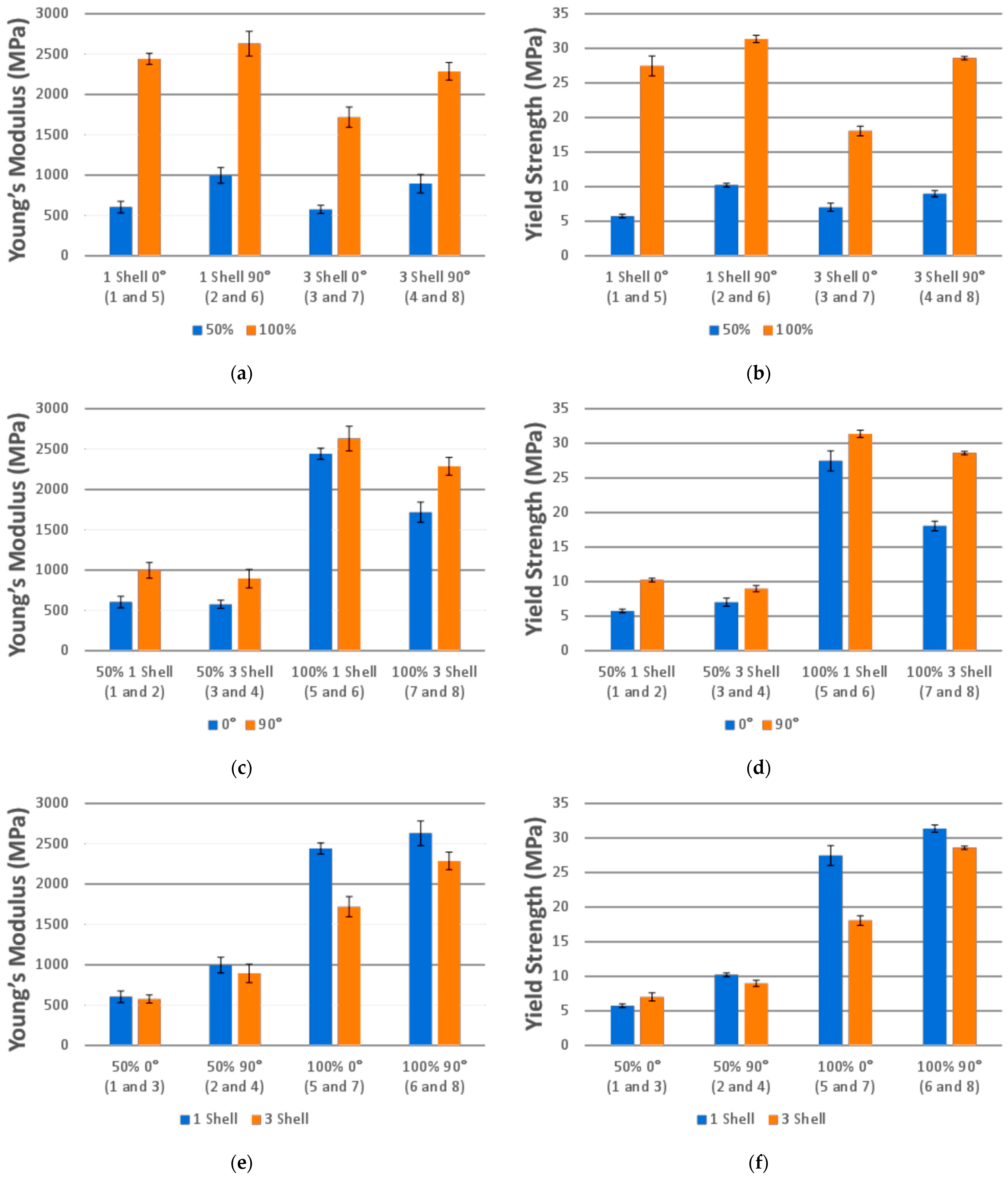 | Batch | Parameters (IA, S, LH) 1 | Mass (g) | Young’s Modulus (MPa) | Yield Strength (MPa) | Ult. Strength (MPa) |