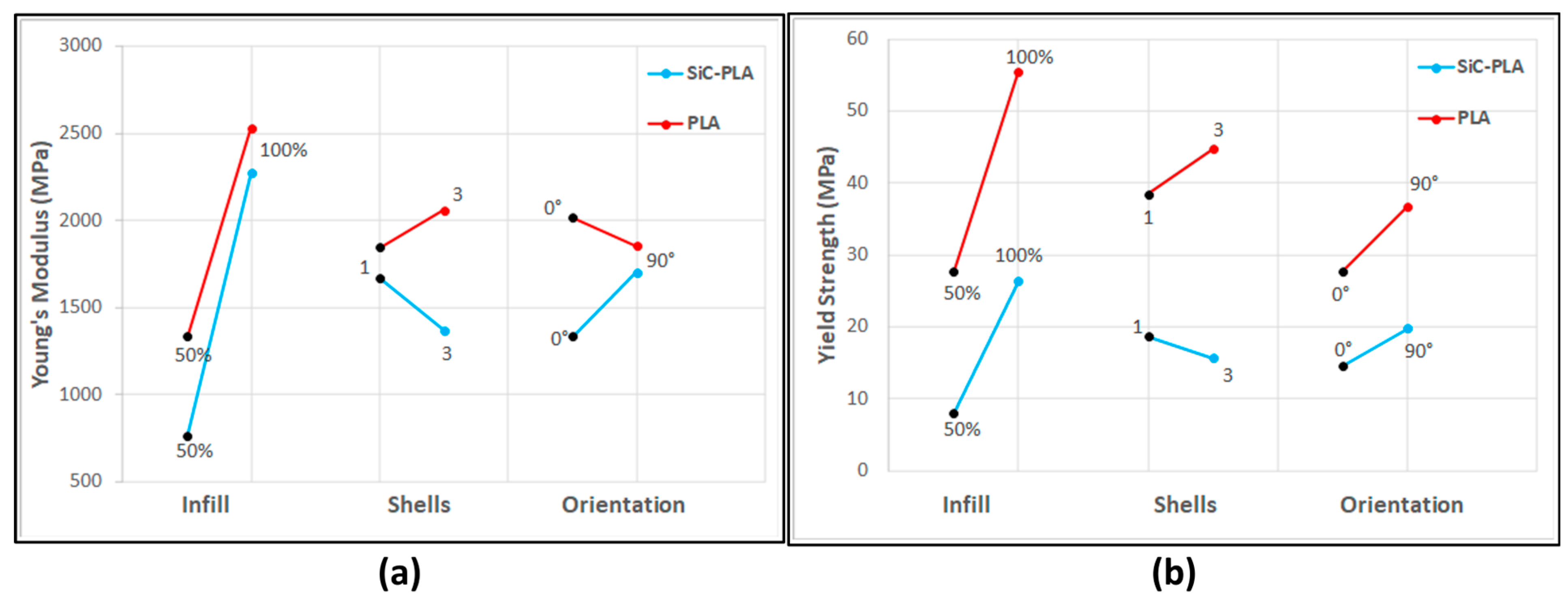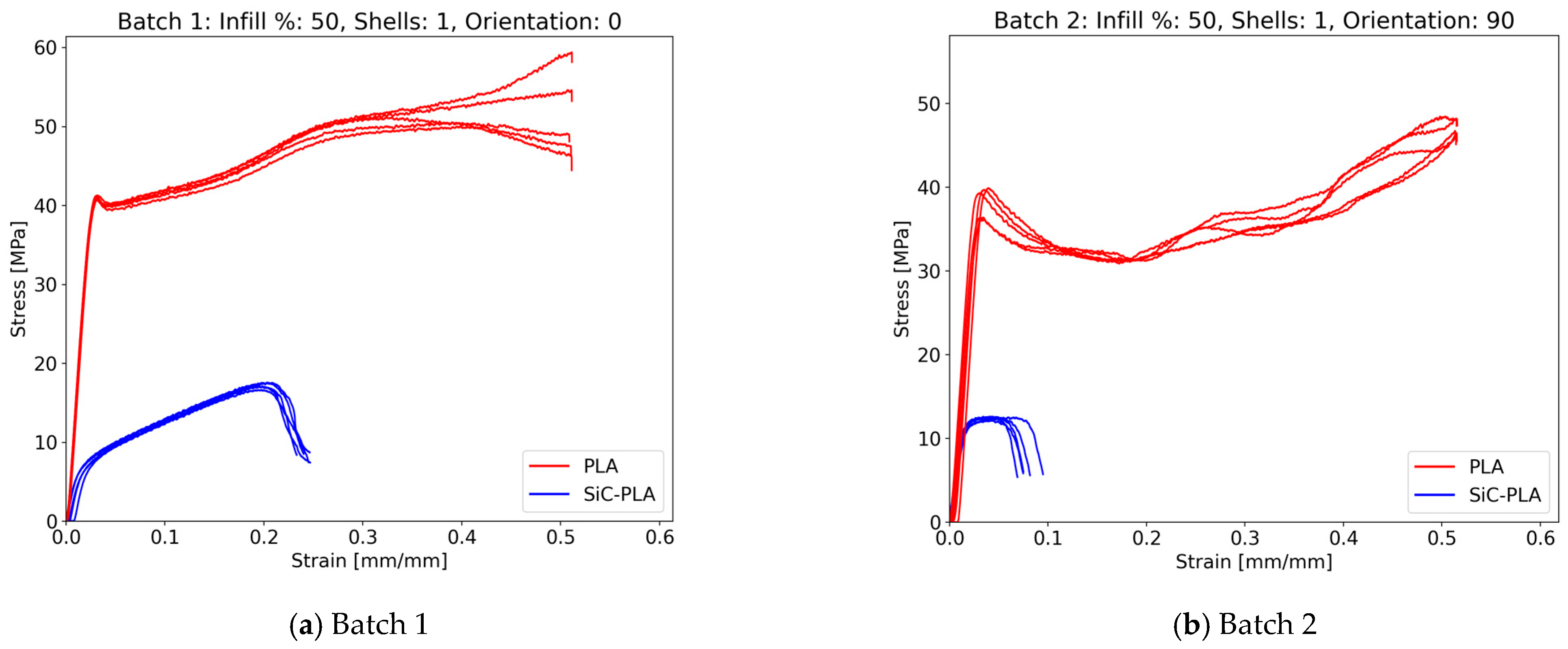 - Skorda, S.; Bardakas, A.; Segkos, A.; Chouchoumi, N.; Hourdakis, E.; Vekinis, G.; Tsamis, C. Influence of SiC Doping on the Mechanical, Electrical, and Optical Properties of 3D-Printed PLA. J. Compos. Sci. 2024, 8, 79. [Google Scholar] [CrossRef]