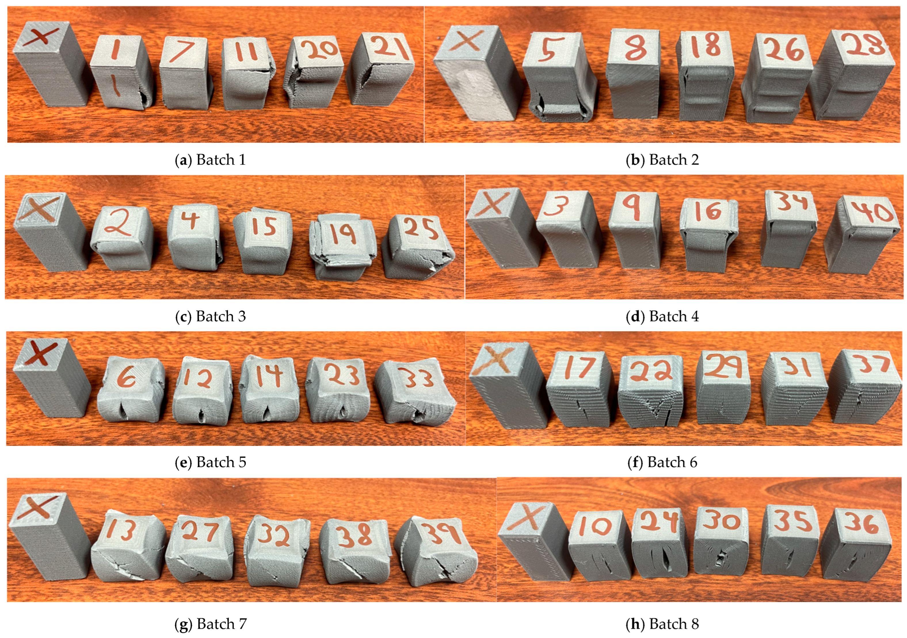 - Kartal, F. Mechanical Performance Optimization in FFF 3D Printing Using Taguchi Design and Machine Learning Approach with PLA /Walnut Shell Composites Filaments. Vinyl Addit. Technol. 2025, 31, 622–638. [Google Scholar] [CrossRef]