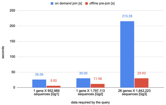 The first set of queries (named as Qg1–3) are concerned with the annotation of nucleotide variants on the viral genome. Table 2 describes in natural language three queries that require the alignment of nucleotide variants and genes. Those queries are optimized by the relation NucleotideVariantAnnotated; such a materialized view, indeed, stores the result of a join between the content of the table NucleotideVariant and the attribute gene_name from the Annotation table. The timings of the queries Qg1–3 are reported in Table 3.
