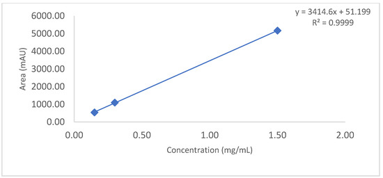 Slope and intercept calculation using loading amount (mg/mL) versus main peak area (mAU) obtained from 1.5 mg/mL to 0.15 mg/mL.