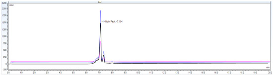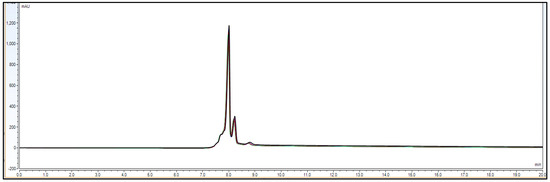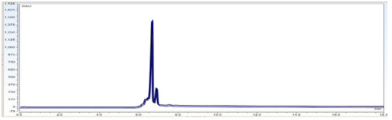 Representative chromatogram for IgG1 sample loading of 5%, i.e., 0.15 mg/mL from 100% standard injection amount, i.e., 3.0 mg/mL for LOD calculation.