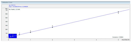 Calibration was performed in six steps (Figure 1). The correlation coefficient r > 0.995. The biomass was used to calculate the specific auxin concentration [26,27]. For each strain, the study was repeated twice.