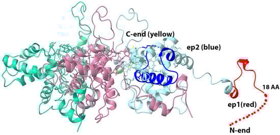 As Figure 4 shows, epitopes ep1 and ep2 are located on the surface of the proposed 3D structure of the BYV virion fragment, and thus may potentially serve as antigens that can induce the immune response.