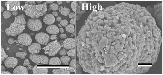 Carbon black MOGUL® (Cabot, Boston, MA, USA) was dispersed in 0.85% polyvinyl alcohol (PVA500) (Kanto Chemical, Tokyo, Japan). The treated carbon black was spray-dried, and the sphered CB was prepared with the dried materials with a tube-shaped furnace of nitrogen at 800 °C. The sphered CB was adjusted to 10% (w/v) into 5% nitric acid and boiled for 60 min. The prepared sphered CB was collected with a suction filter, washed with water at 60 °C, and then dried at 115 °C for over 24 h. Finally, the carbon materials were obtained.