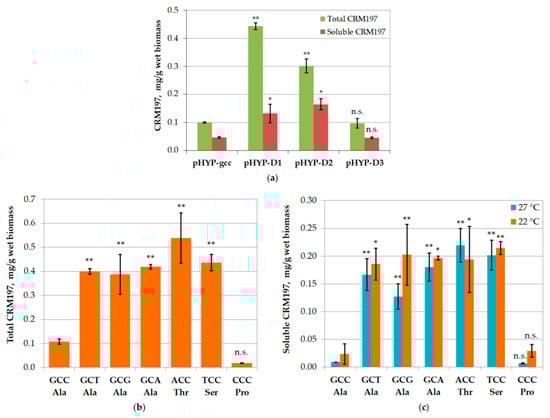 High-Level Production of Soluble Cross-Reacting Material 197 in Escherichia coli Cytoplasm Due to Fine Tuning of the Target Gene’s mRNA Structure