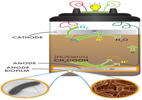 - Wikimedia Commons. Microbial Fuel Cells. 2010. Available online: http://wikepedia.org/wiki/Microbialfuel (accessed on 10 November 2023).
