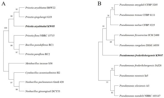 | KW07 | 35.951894, 129.543674 | ++ | ++ | +++ | + | Pseudomonas frederiksbergensis |
