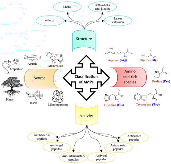- Huan, Y.; Kong, Q.; Mou, H.; Yi, H. Antimicrobial Peptides: Classification, Design, Application and Research Progress in Multiple Fields. Front. Microbiol. 2020, 11, 582779. [Google Scholar] [CrossRef] [PubMed]