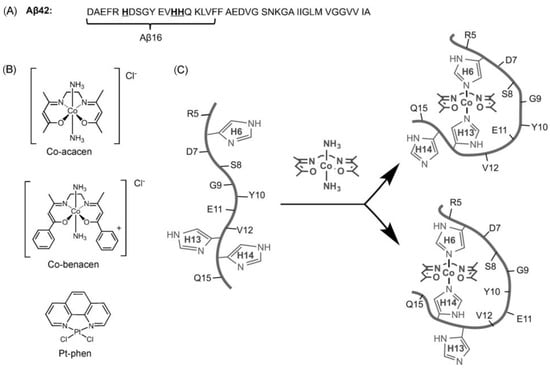 - Heffern, M.C.; Velasco, P.T.; Matosziuk, L.M.; Coomes, J.L.; Karras, C.; Ratner, M.A.; Klein, W.L.; Eckermann, A.L.; Meade, T.J. Modulation of Amyloid-β Aggregation by Histidine-Coordinating Cobalt(III) Schiff Base Complexes. ChemBioChem 2014, 15, 1584–1589. [Google Scholar] [CrossRef] [PubMed]