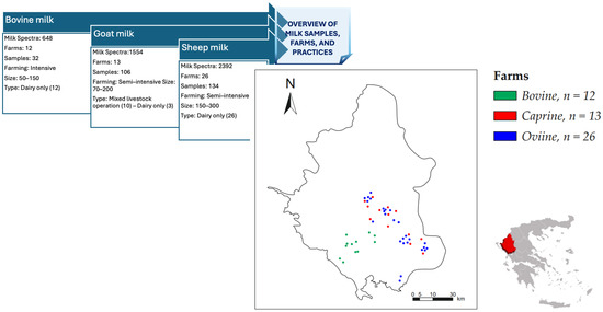 Schematic Overview of Milk Samples and Farm Characteristics by Species, from the Epirus region of Greece.