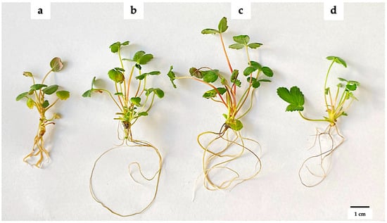 - Neri, J.C.; Meléndez-Mori, J.B.; Tejada-Alvarado, J.J.; Vilca-Valqui, N.C.; Huaman-Huaman, E.; Oliva, M.; Goñas, M. An optimized protocol for micropropagation and acclimatization of strawberry (Fragaria × ananassa Duch.) variety ‘Aroma’. Agronomy 2022, 12, 968. [Google Scholar] [CrossRef]