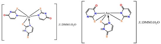The probable structure of the gold complex with 2,4-dithiouracil, 2-Tu, and U [38].