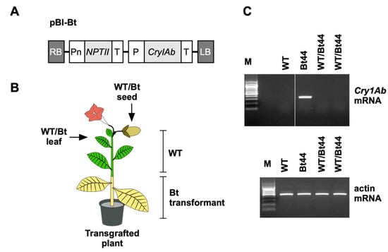 Chicago/Turabian StyleAndo, Arisa, Hitomi Ohkubo, Hisae Maki, Takumi Nishiuchi, Takumi Ogawa, Tomofumi Mochizuki, Daisaku Ohta, Hiroaki Kodama, and Taira Miyahara. 2025. "Translocation of Insecticidal Bt Protein in Transgrafted Plants" BioTech 14, no. 3: 64. https://doi.org/10.3390/biotech14030064