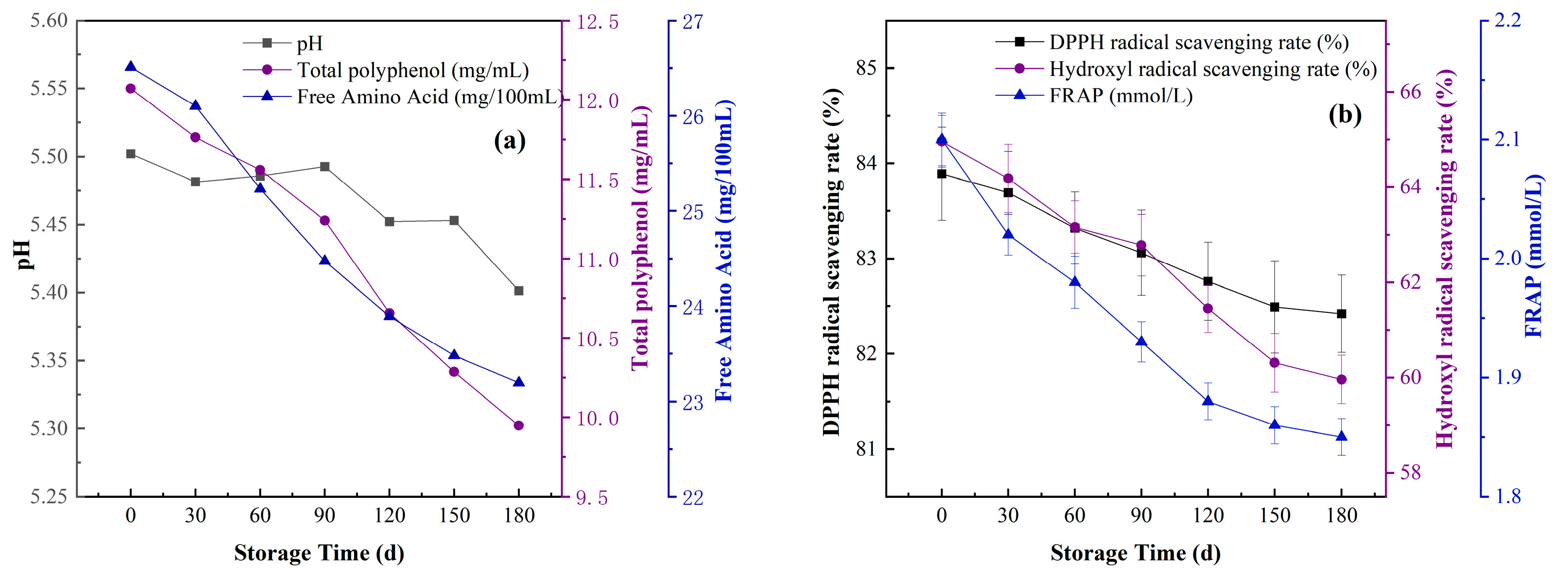 3.5. Variations in the Physical and Chemical Properties of Suaeda Tea During the Storage Period