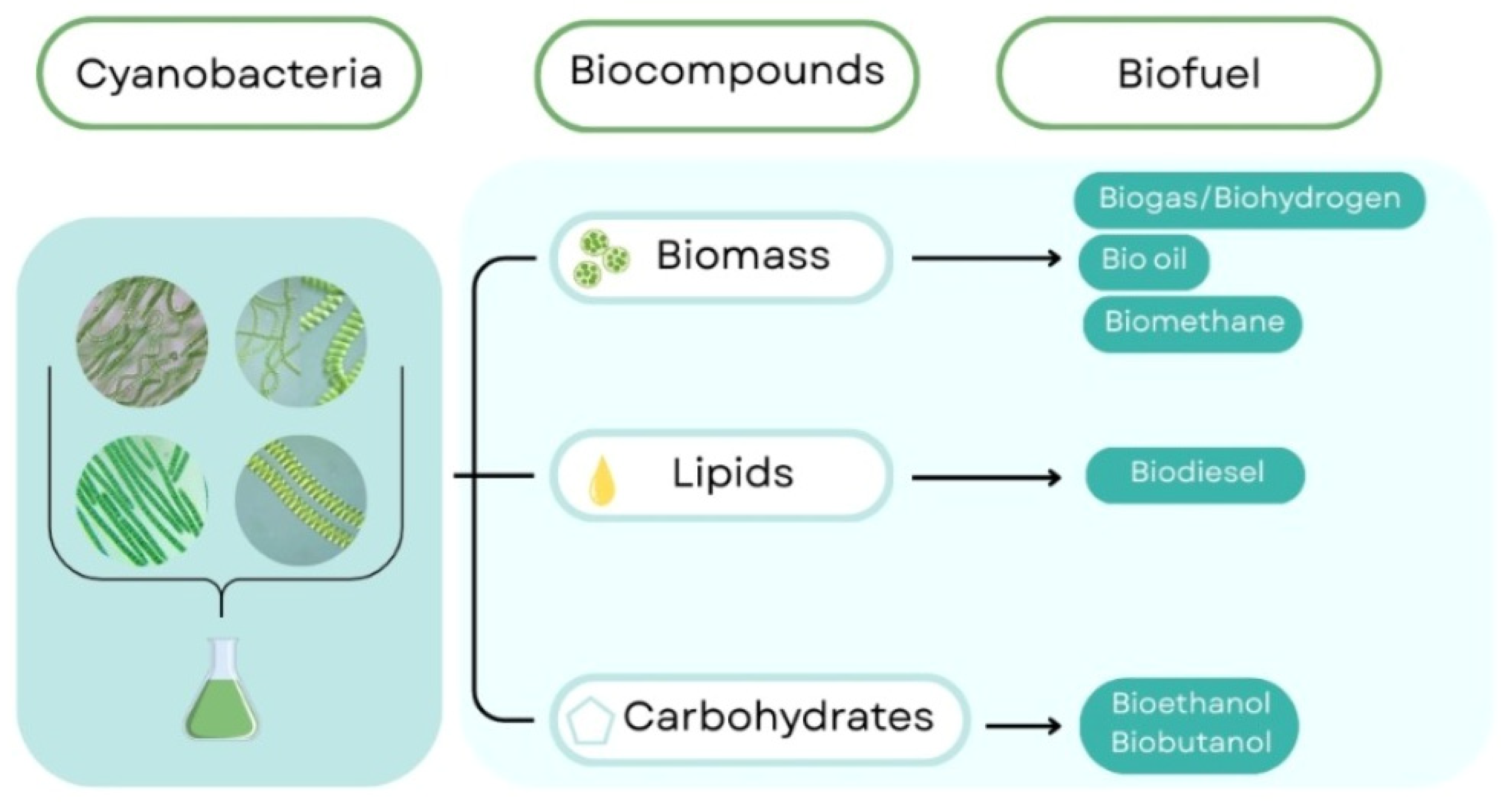 - Singh, K.B.; Kaushalendra, V.S.; Lalnunpuii, R.; Rajan, J.P. Current Issues and Developments in Cyanobacteria-Derived Biofuel as a Potential Source of Energy for Sustainable Future. Sustainability 2023, 15, 10439. [Google Scholar] [CrossRef]