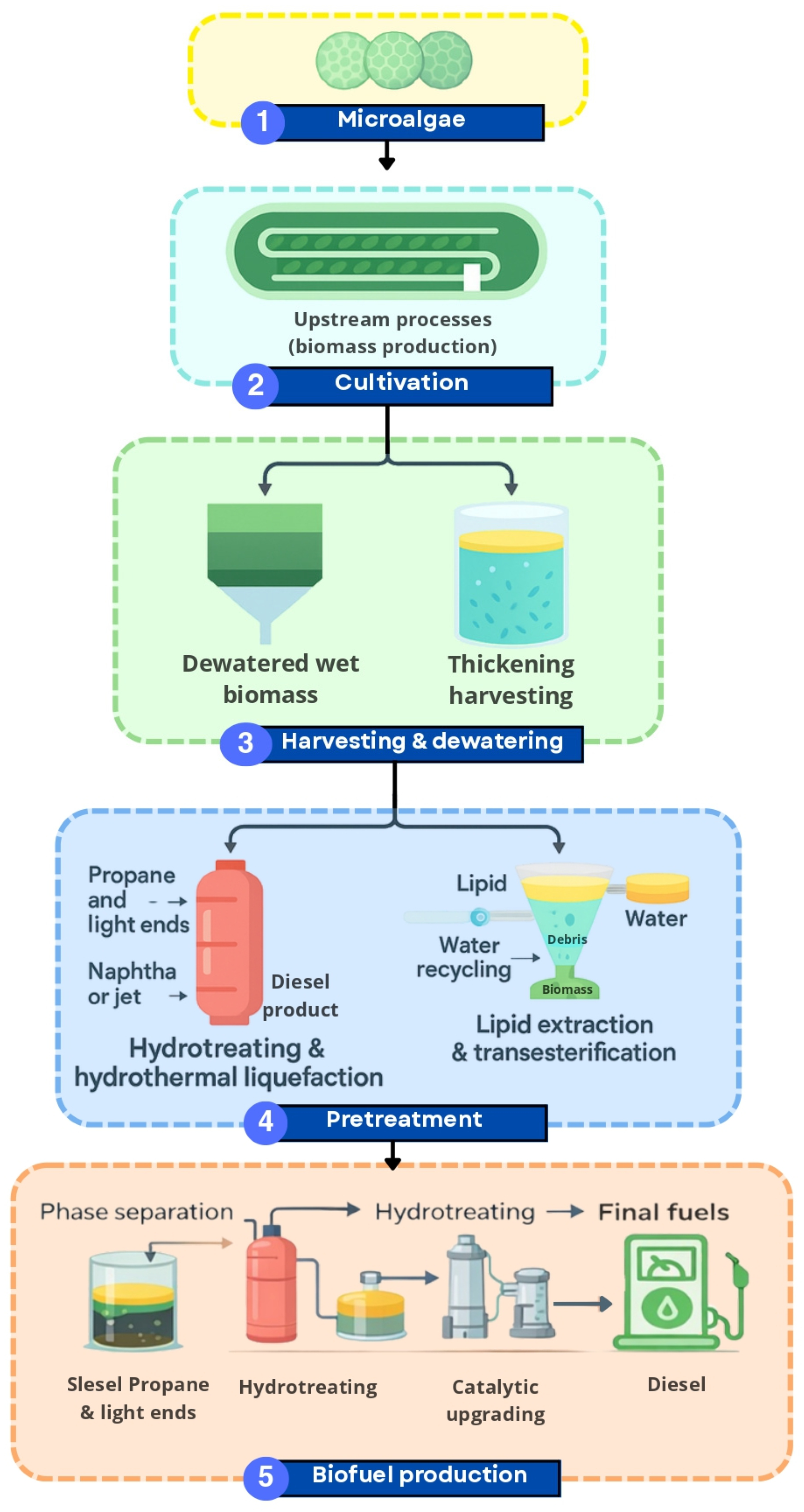 - Martinez-Villarreal, S.; Breitenstein, A.; Nimmegeers, P.; Perez Saura, P.; Hai, B.; Asomaning, J.; Alizadeh Eslami, A.; Billen, P.; Van Passel, S.; Bressler, D.C.; et al. Drop-In Biofuels Production from Microalgae to Hydrocarbons: Microalgal Cultivation and Harvesting, Conversion Pathways, Economics and Prospects for Aviation. Biomass Bioenergy 2022, 165, 106555. [Google Scholar] [CrossRef]