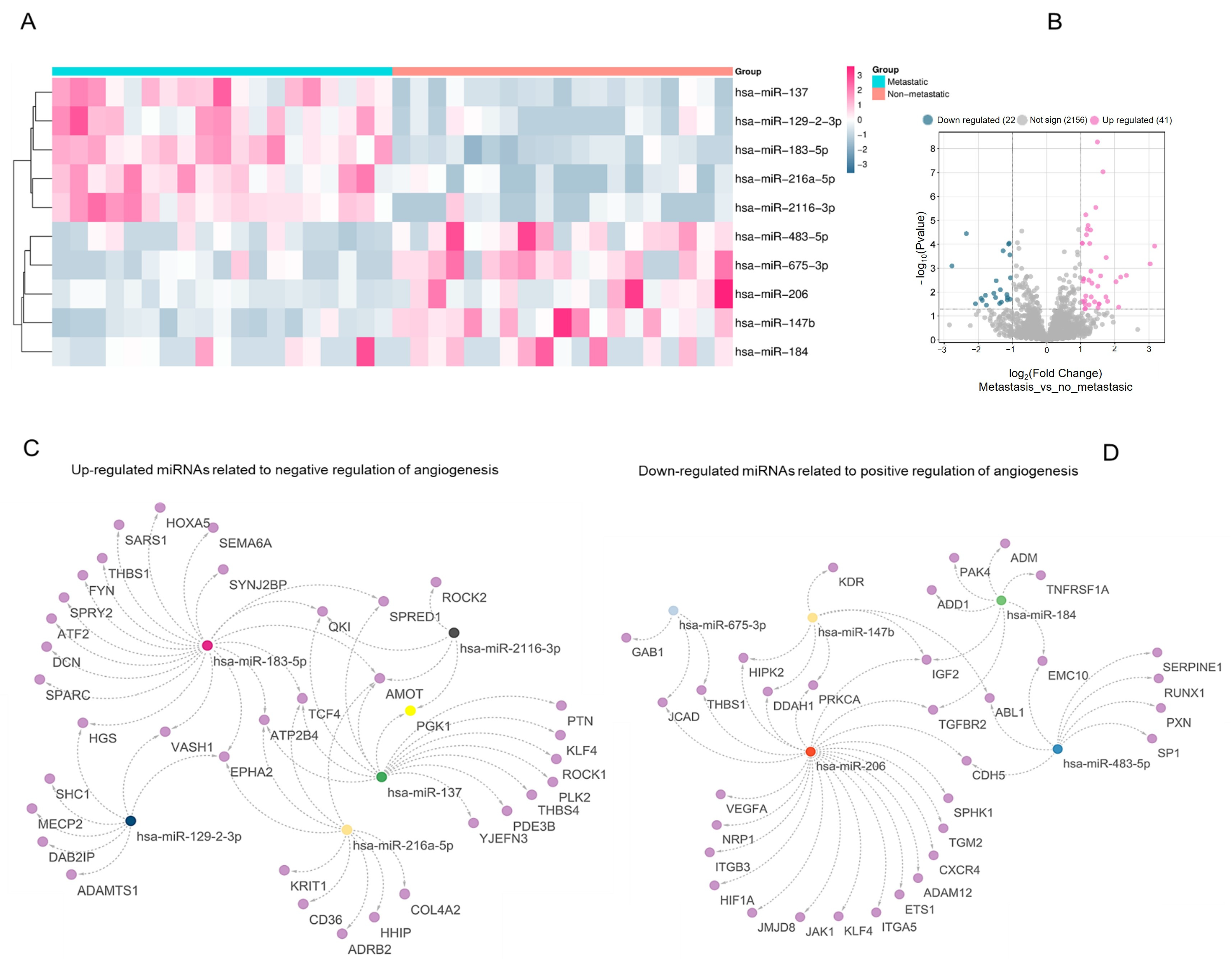 Figure 1B). Conversely, hsa-miR-483-5p, hsa-miR-675-3p, hsa-miR-206, hsa-miR-147b, and hsa-miR-184 were downregulated and linked to genes annotated under ‘positive regulation of angiogenesis’ (
