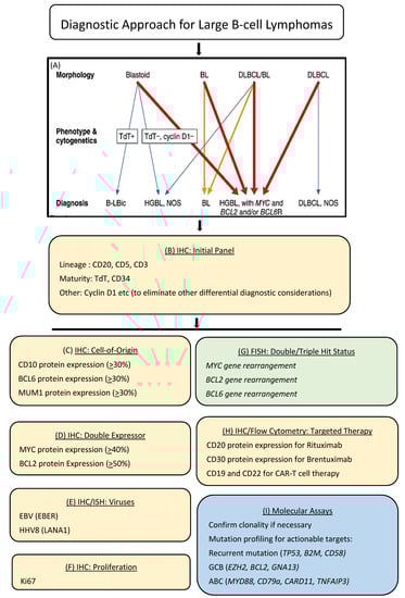 - Warnke, R.A.; Gatter, K.C.; Falini, B.; Hildreth, P.; Woolston, R.-E.; Pulford, K.; Cordell, J.L.; Cohen, B.; De Wolf-Peeters, C.; Mason, D.Y. Diagnosis of human lymphoma with monoclonal antileukocyte antibodies. N. Engl. J. Med. 1983, 309, 1275–1281. [Google Scholar] [CrossRef]