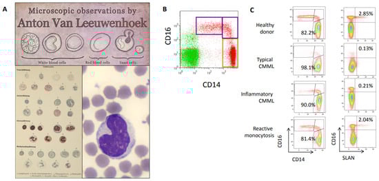 - Tarfi, S.; Badaoui, B.; Freynet, N.; Morabito, M.; Lafosse, J.; Toma, A.; Etienne, G.; Micol, J.B.; Sloma, I.; Fenaux, P.; et al. Disappearance of slan-positive non-classical monocytes for diagnosis of chronic myelomonocytic leukemia with associated inflammatory state. Haematologica 2019, 2019, 219782. [Google Scholar] [CrossRef]