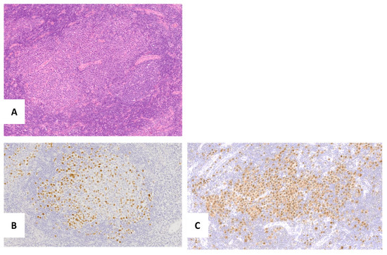 - Zanelli, M.; Zizzo, M.; Bisagni, A.; Froio, E.; de Marco, L.; Valli, R.; Filosa, A.; Luminari, S.; Martino, G.; Massaro, F.; et al. Germinotropic lymphoproliferative disorder: A systematic review. Ann. Hematol. 2020, 99, 2243–2253. [Google Scholar] [CrossRef]