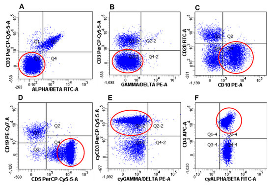 - Stacchini, A.; Demurtas, A.; Aliberti, S.; Francia di Celle, P.; Godio, L.; Palestro, G.; Novero, D. The usefulness of flow cytometric cd10 detection in the differential diagnosis of peripheral t-cell lymphomas. Am. J. Clin. Pathol. 2007, 128, 854–864. [Google Scholar] [CrossRef]