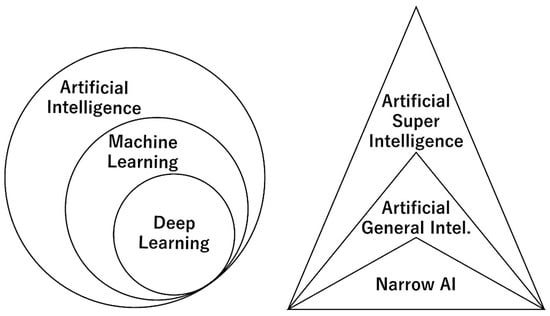 There are several definitions and subtypes of AI. The most commonly used AI is weak AI or narrow AI (ANI), which aims to solve specific and concrete problems, such as autonomous driving vehicles. Conversely, strong AI emulates the human mind. Within strong AI, two subtypes are defined. (1) Artificial general intelligence (AGI) equals the human mind, including awareness of oneself and the environment. AGI manages to identify problems, learn how to solve them, and make early plans to recognize and address emerging issues. (2) Artificial superintelligence (ASI) is more advanced than human intellect (Figure 4).